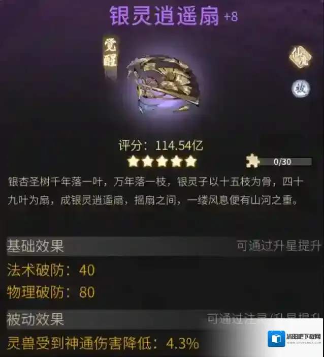 银杏圣树千年落一叶,万年落一枝,银灵子拾其枝叶,炼成“银灵逍遥扇”,一摇一扇间,风息便有山河之重。