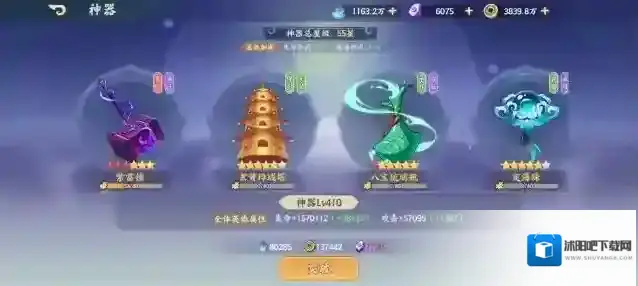 3、拍卖行优先买练得角色加神兵,角色主要升六星,神器碎片主要买锤子,幡和山河,前期主要锤子,随机古宝能买就买,集图鉴加套装。