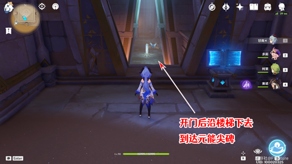 我们打开边上大门,沿着楼梯下去即可找到元能尖碑。