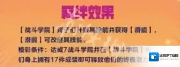 3、战斗学院:凑齐7战斗学院 且携带17件成装,解锁终极技能。