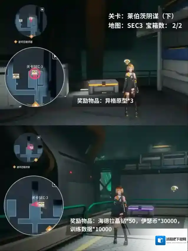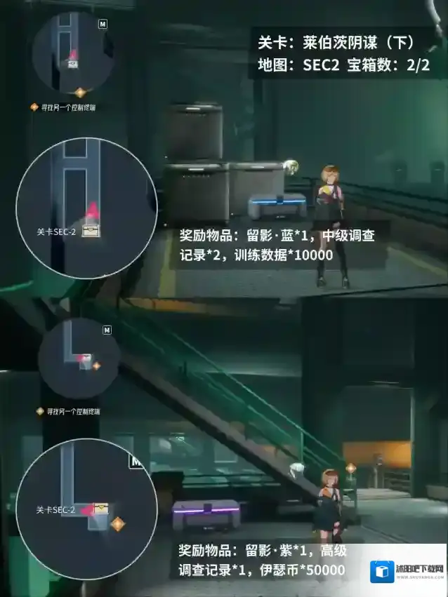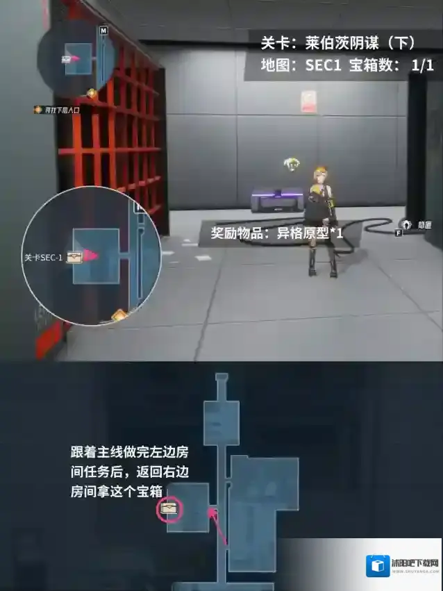 在本章地图里,第一个可拿到的宝箱,需要在主线任务第一阶段的剧情完成后,返回到另一侧的房间去收集。剩下的4个宝箱,在跟进剧情时都会直接遇到,收集起来并没有特别的难度啦。具体的宝箱位置和奖励情况可以在组图里查看~