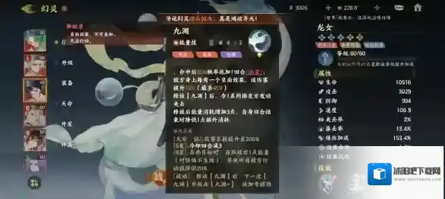 2. 西施(控制核心)–五星.七星+速度和命中套装,保证群体挂减速和推条稳定生效,配合鲲鹏形成“我方加速+敌方减速”的双重行动条压制。