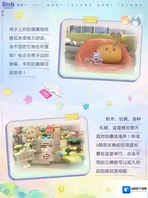《奥比岛:梦想国度》是一款奇幻冒险类游戏,小编最近发现游戏里藏着一个会发光的次元门,推开门居然能遇见会说话的毛绒爪子!这次三周年庆典直接把整个岛屿变成了巨型游乐场,连空气都飘着奶油蛋糕的甜香。别急着点开视频,先看看这些新场景会不会让你想立刻穿越过去。
