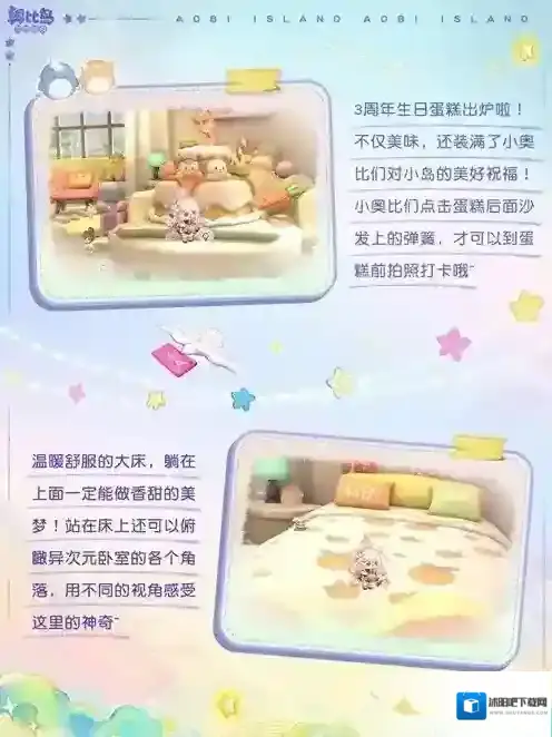 7月3日版本更新后,小奥比们可前往全新3d场景「异次元卧室」参加周年庆狂欢,在同款打卡点拍照留念!各个打卡点还有惊喜互动等着大家参与!