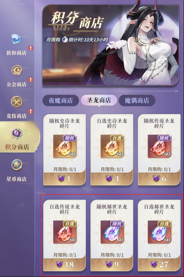 自选传说圣龙、随机稀世圣龙、自选稀世圣龙可根据自身阵容需要推荐兑换。