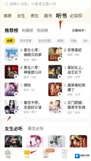 4、除了上面这个听书方法,你还可以在书城直接选择听书选项,在这里点进你想听的小说。
