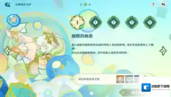 原神交映现实与梦第一关酣眠的倒悬怎么做?在原神中,最近开启了一项名为彩糖与蔷薇的幻色颂的特别活动。作为该活动的一部分,第一关酣眠的倒悬要求玩家们寻找六个特定的物品。这些物品不仅分布广泛而且有的还相当隐蔽,不过不用担心,接下来小编将为大家详细介绍这六个关键道具的具体位置以及获取方法。