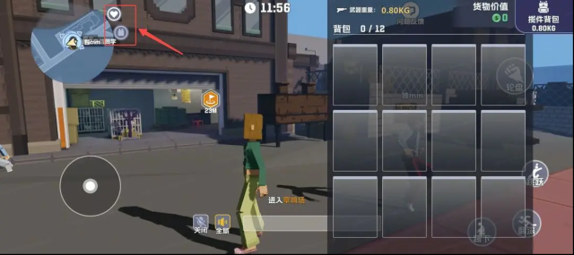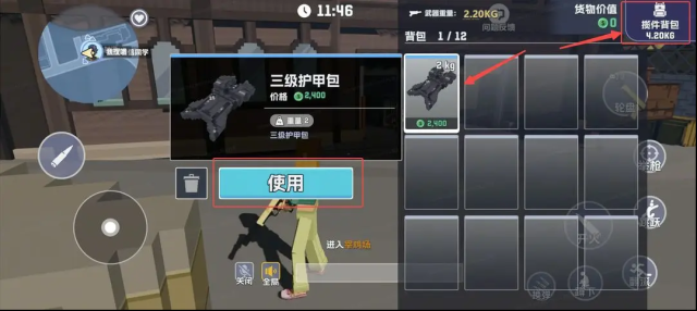 点击右上角的揽件背包,点击使用穿上护甲包。