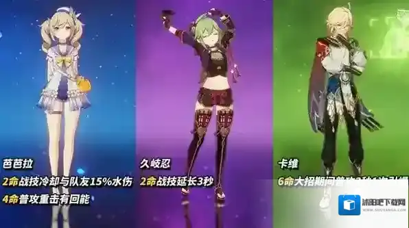 4星角色中,芭芭拉2命和4命适合站场玩法,久岐忍2命延长战技时间,卡维6命普攻引爆草原核。
