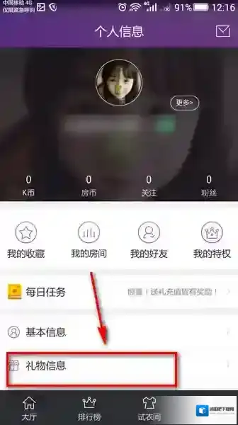 点击“礼物信息”可以查看别人送你的礼物。