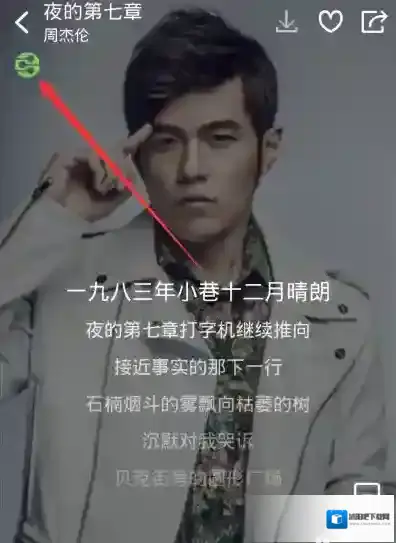 4、我们点击播放手机的酷狗音乐的随意一首歌,并且进入歌词写真页面,就可以看到在歌词写真页面有一个如图所示的按钮。