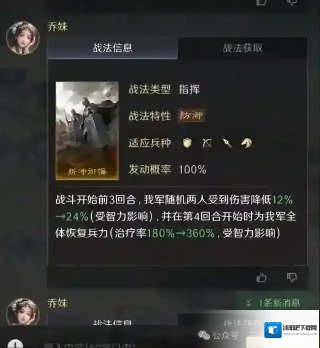 三回合高额减伤+一回合爆发回血,避其锐气升级版,作为稀有的减伤战法,优先级很高。