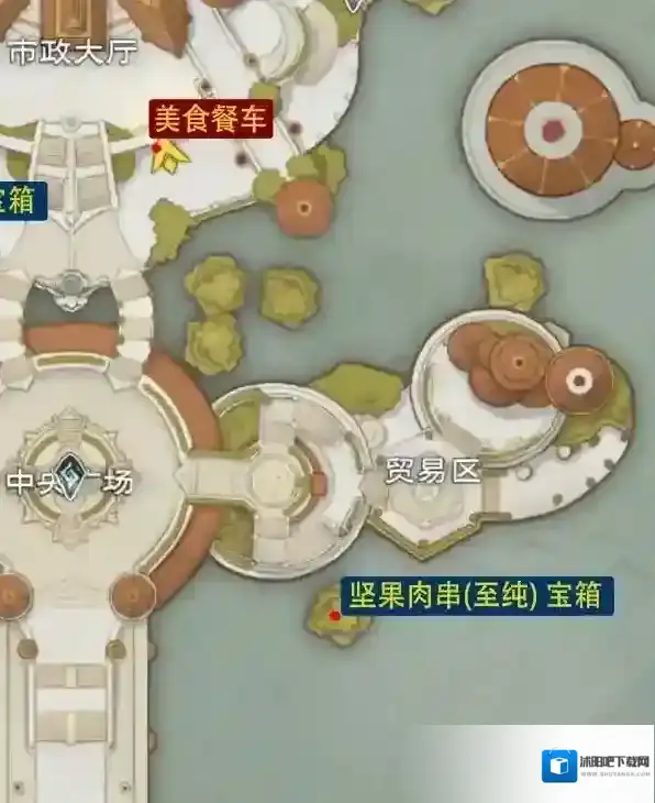 烹饪制成的美食可用于开启美食宝箱,宝箱分布在三张区域各处。第一日宝箱位置如下:
