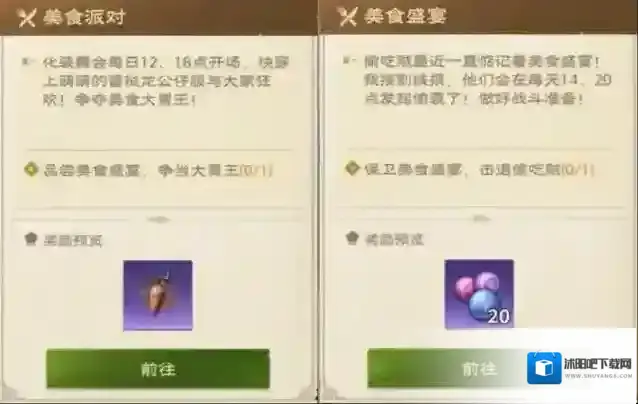 美食盛宴:第六天开启,后续每天14点、20点开启,在活动页点击前往参加即可。