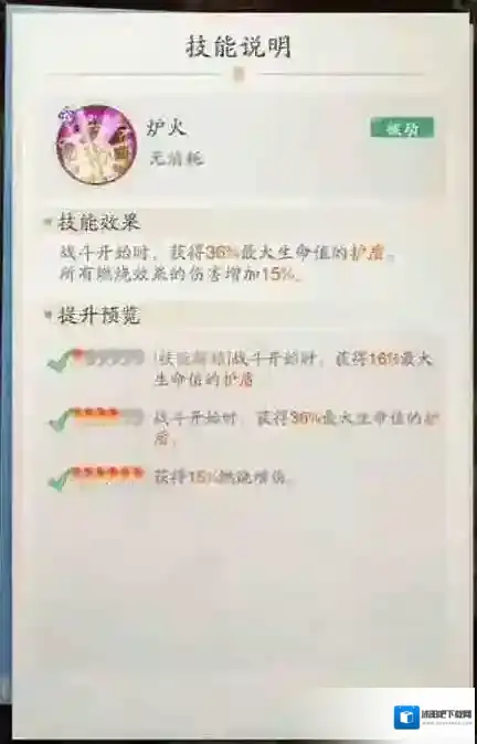 而妙喵更多的是保证生存,毕竟活着才有输出,主动技能可以获得客观护盾,同时给燃烧增加伤害,7阶后再次强化两种效果。