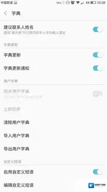 4、在手机上打开谷歌拼音输入法,点击“字典”