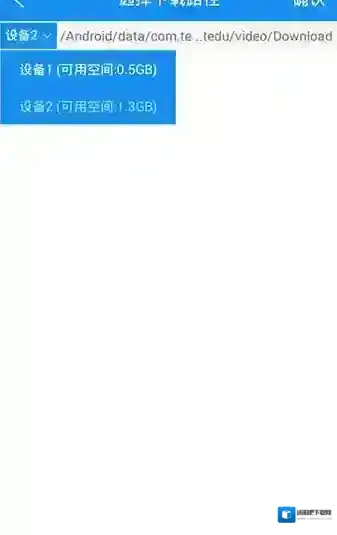 4、点击优先下载路径这个功能,进入到选择下载路径界面中,点击设备旁边的倒三角按钮,就可以根据容量大小选择下载路径了,选择好以后就点击“确定”按钮,如下图。