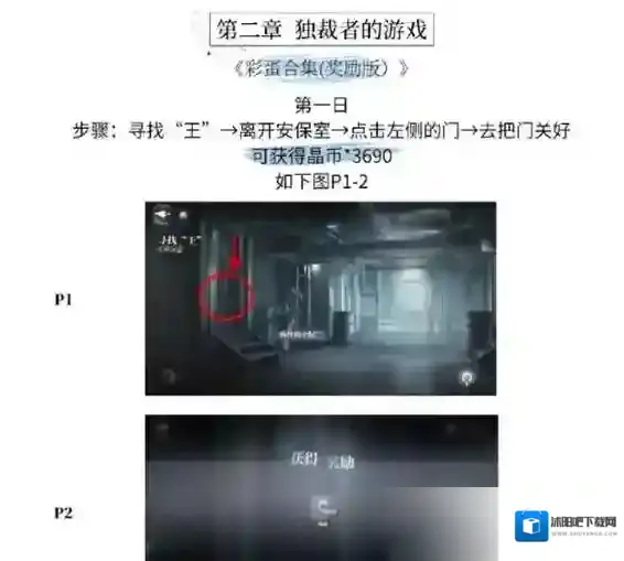6.世界之外独裁者的游戏彩蛋一:第一日寻找王-离开保安室-点击左侧的门-去把门关好可获得晶币*369。
