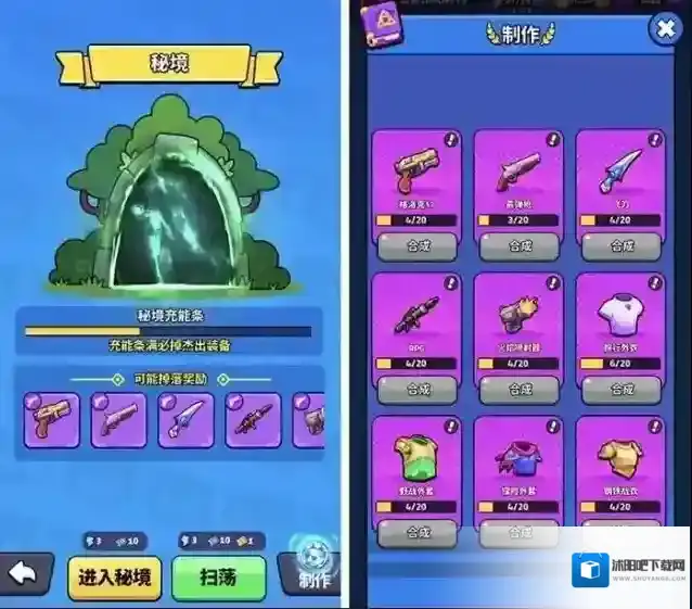 2、设备可以升级和分级,也可以降级而不损坏,材料可以退回,它也可以被合成,白转蓝设备可以合成成紫色材料进行升级。