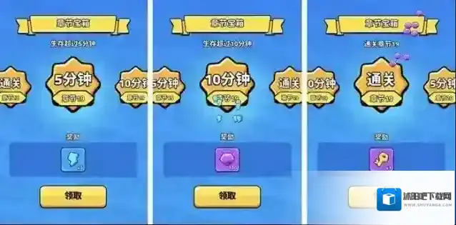 记得每次通关都领取下,有一把宝箱钥匙,分别为5分钟奖励、10分钟奖励和15分钟奖励。