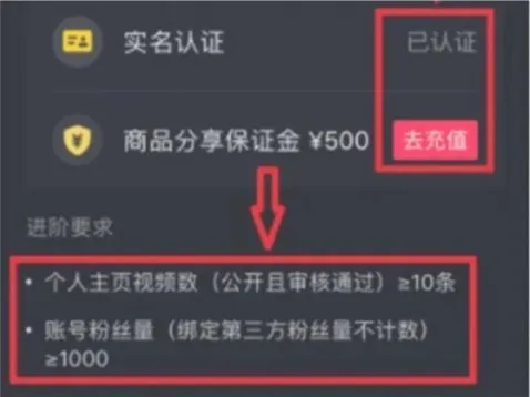 抖音挂小黄车需要的条件是实名认证、发布作品大于等于10个、粉丝数大于1000。