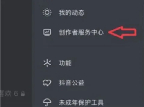 2、点击创作者服务中心在弹出页面中点击创作者服务中心。