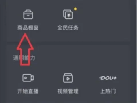 3、点击商品橱窗在页面中点击商品橱窗选项。