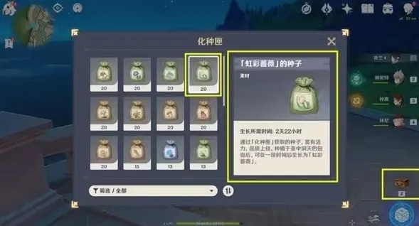 注意事项:将采集得到的虹彩蔷薇种子在尘歌壶种下,然后等待成熟即可,2天22小时。没有种子也可以在壶灵阿圆处购买。这就不多说了。