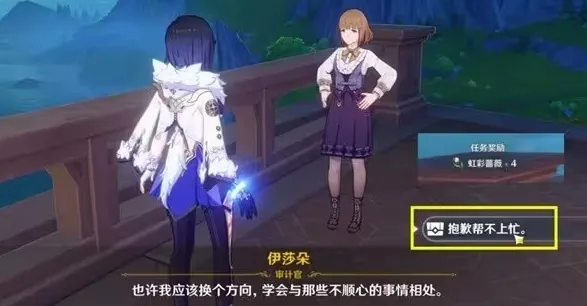 注意事项:将时间调到晚上,来到枫丹廷七天神像,往西北方向走可以看到npc lt;审计官 gt;伊莎朵,与她对话即可获得4个虹彩蔷薇,一次性奖励。