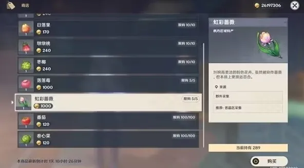 3、可购买的虹彩蔷薇5个,刷新时间72小时。