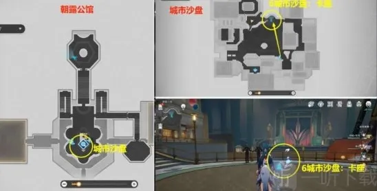 (1)点击放大镜图标,传送进城市沙盘,下图为6城市沙盘:卡座贴纸位置