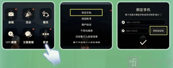 4. 点击游戏右上角设置-更多-绑定手机完成游戏内手机号绑定