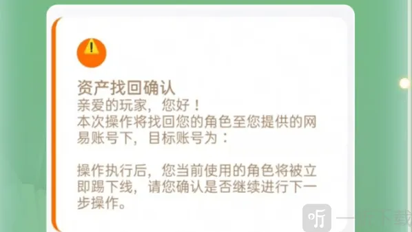 4. 输入并登录网易账号后确认资产找回角色ID与网易账号是否一致,确认无误后点击确定按钮