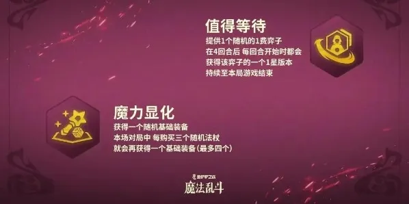 提供1个随机的1费弈子,在4回合后每回合开始时都会获得该弈子的一个1星版本,持续至本局比赛终止。