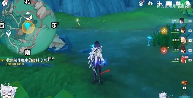 1、回到赐福小屋以后,就继续根据指引到悬崖下面获取到制作魔水的材料,在草丛里边很容易就收集到了。