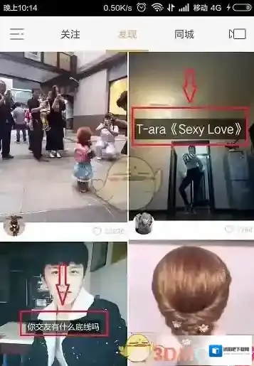 进入快手的首页,我们可以发现首页分为三个模块:关注、发现、同城。不同板块的流量也不一样,车展的流量会集中在同城这里。美妆视频再关注和发现上都有。