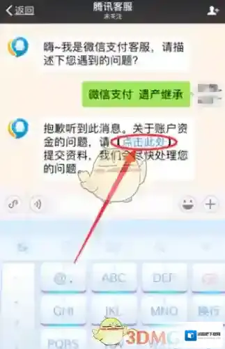 5、在客服的联系对话框内输入“微信支付 遗产继承”,然后回车;