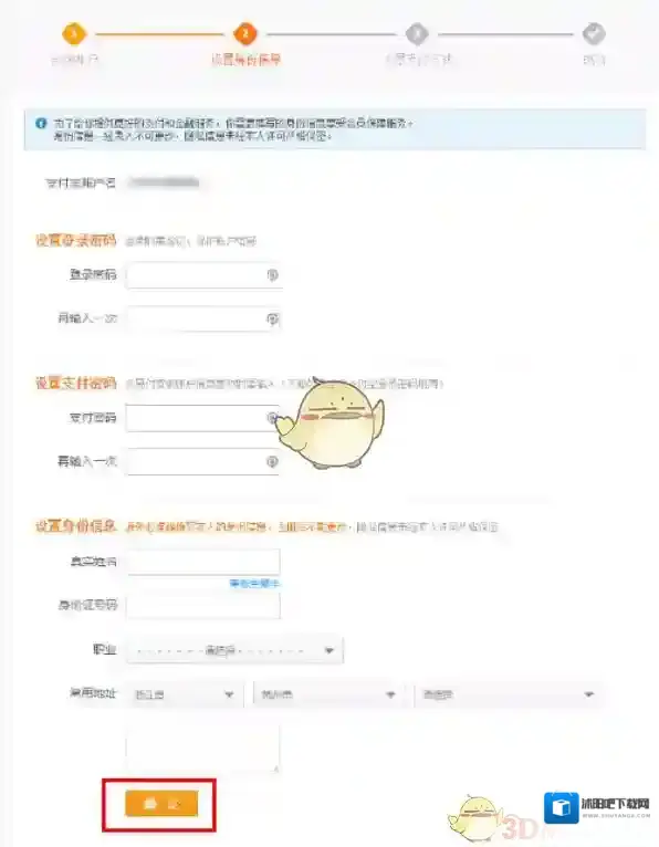 5、填写个人信息后确认真实姓名、身份证号码:必填,需要您的真实信息。注册完成后不可修改。