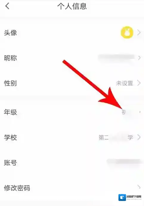 3、在个人信息页面可以看到有“年级”这个选项,我们点击一下。