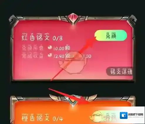 4、然后可以看到红色铭文兑换需要10颗秘豆,红色铭文收益是12颗。