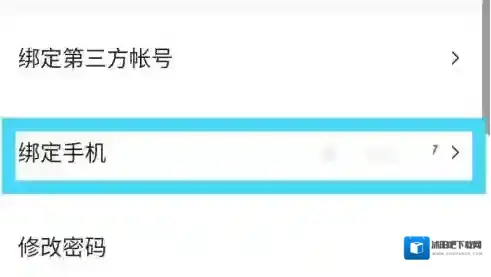 4、在打开的账号设置里面,点击“绑定手机”选项。