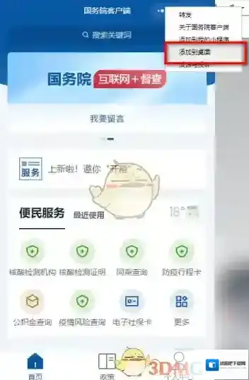 5、在弹出的菜单里选项中,点击“添加到桌面”