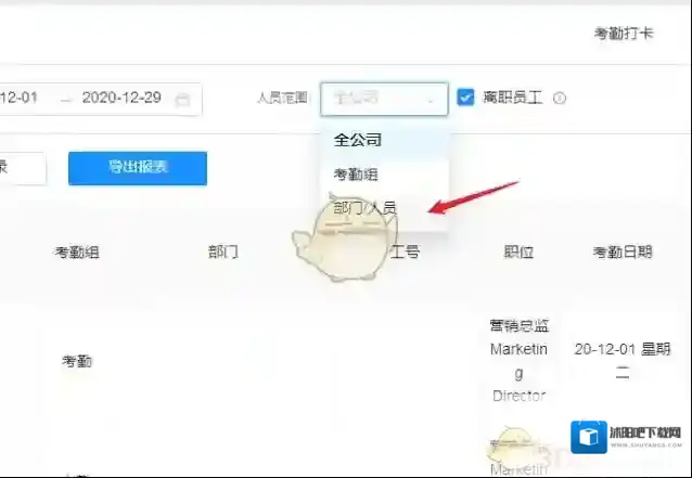 5、点击“人员范围”旁边的下拉列表,选择“部门/人员”