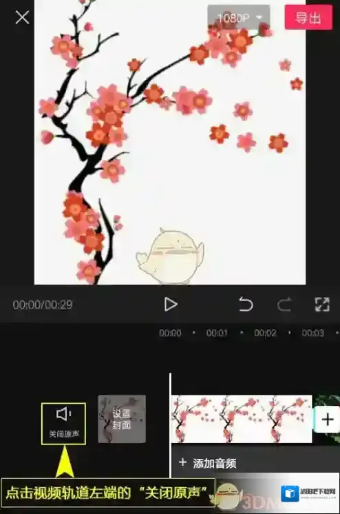 7、关闭原声。如果对视频的原声不满意的话,点击视频轨道左端的“关闭原声”。