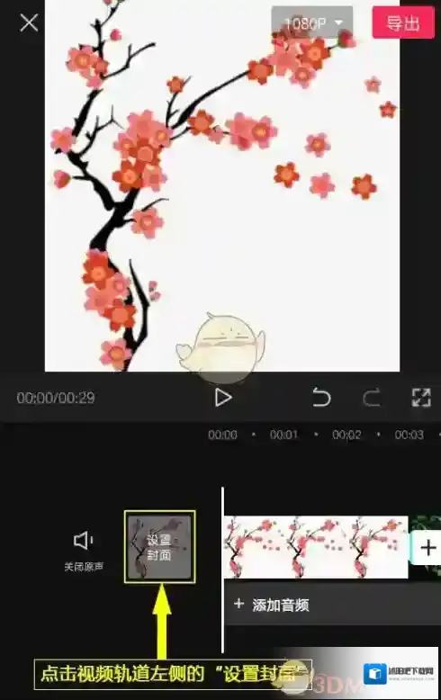 6、设置封面。点击视频轨道左侧的“设置封面”,设置吸引他人关注的封面。