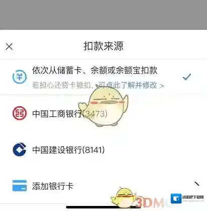 5、就可以看到扣款顺序了,还可以添加新的银行卡
