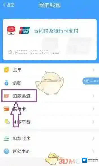 6、银行卡绑定完毕后返回“我的钱包”页面,在页面上可以看到“扣款渠道”,