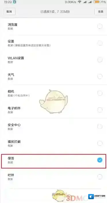 5、选“系统数据”,在里面找到“便签”点击确定就ok了。