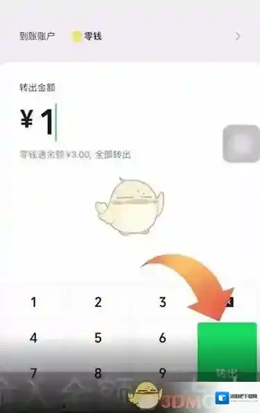 4、选择账户为零钱,点击确定,再输入金额,点击转出;