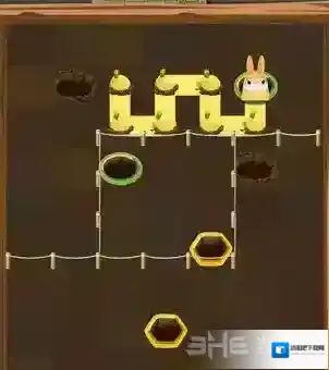 这一关看着很头疼,不过还是被划好了区域的,首先胖兔子otto吃掉上面的卷心菜,进入绿色地道,然后吃掉中间的卷心菜进入黄色地道,出来后,吃掉下方的卷心菜回家;剩下的小兔子和它路线差不多,也是一个个区域来。